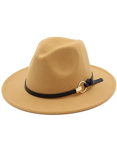 Hestenve Women Wide Brim Vintage Jazz Hat Fedora with Belt at Amazon Women’s Clothing store: |