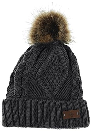 Women's Faux Fur Pom Pom Fleece Lined Knitted Slouchy Beanie Hat |