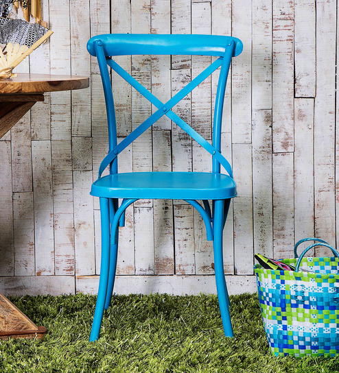 Buy Alva Metal Chair in Blue Color by Bohemiana Online - Metal Chairs - Chairs - Pepperfry |